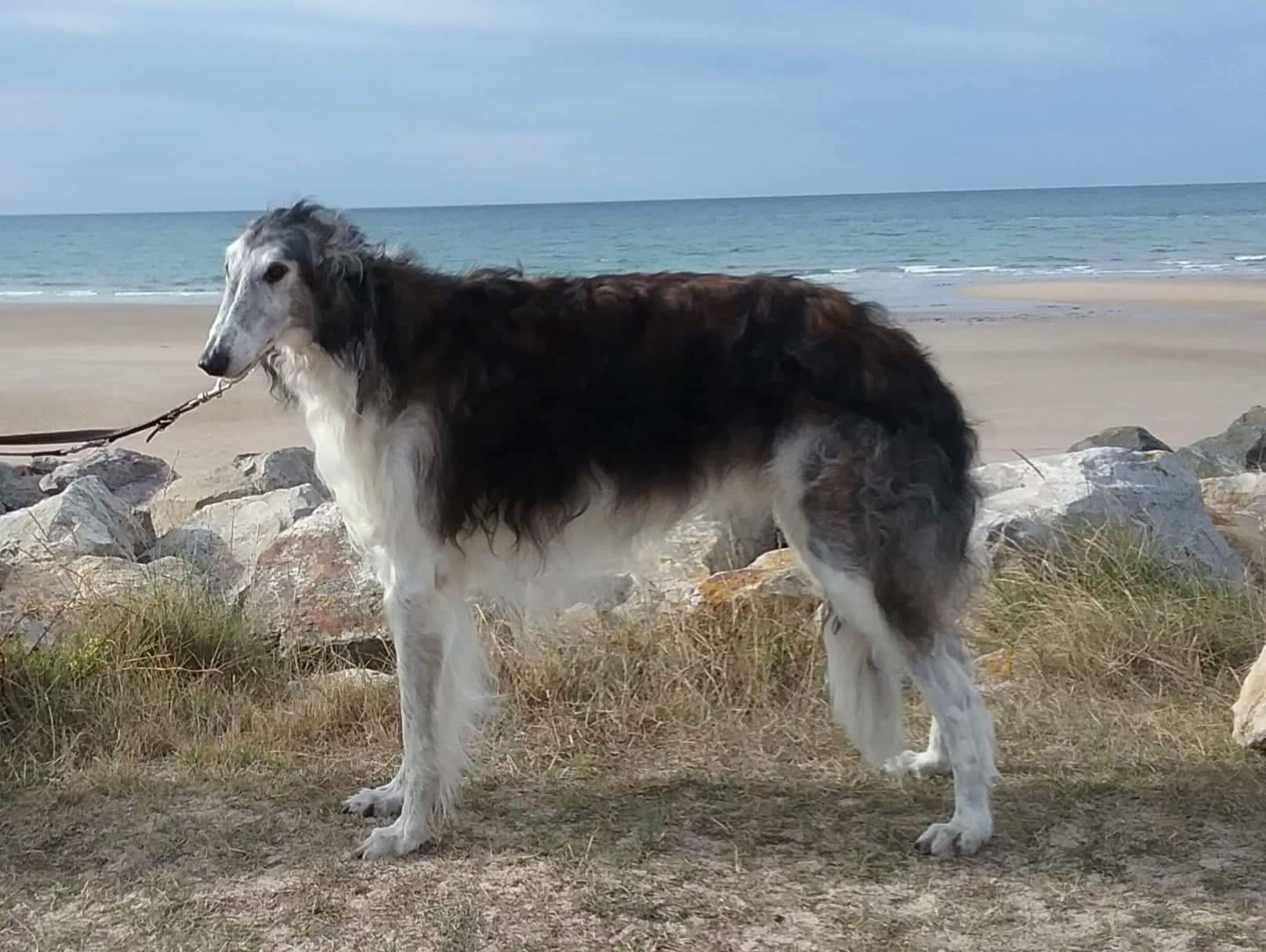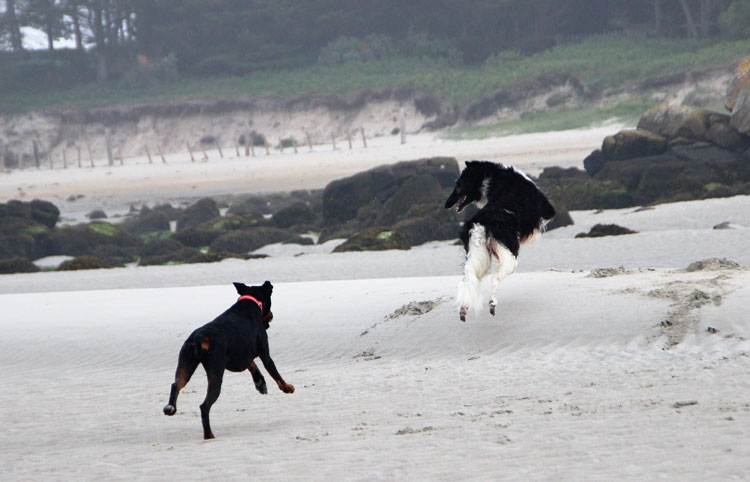 Stepun's Elekin war am bretonischen Meer und hatte viel Spass mit seiner temperamentvollen Spielgefährtin, der jungen Dobermanndame Zelda. .