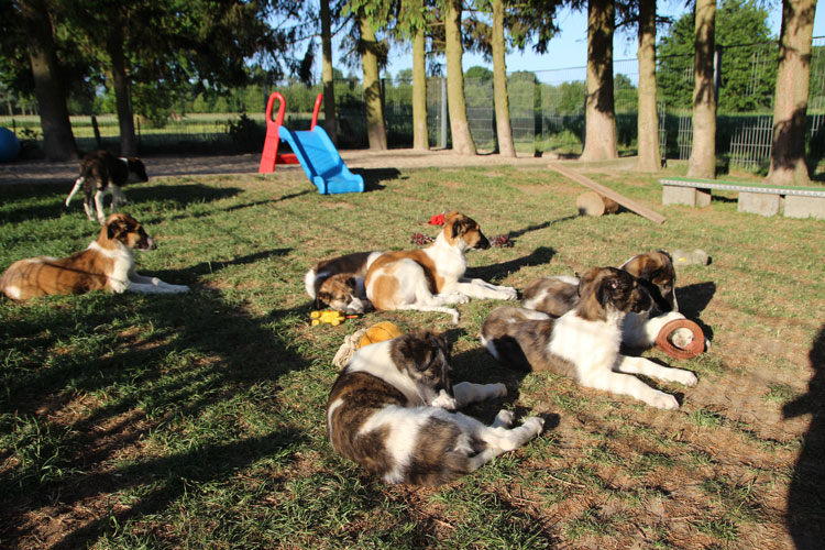 bei wunderschönem Wetter am Niederrhein (von links nach rechts): Stepun`s Emilija, Stepun`s Zubatoi, Stepun`s Dostofei, Stepun`s Fee-Tascha, Stepun`s Chaska