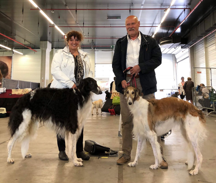 Stepun's Eljuscha aka Barakat zog es mit seiner Laidia zum Großereignis in die Niederlande. Auf der Eurosighthound Show 2018 (Richter: Lisbeth Mach, CH) stand er mit 8 Konkurrenten im Ring und belegte in der offenen Klasse, in der nur vier V-Bewertungen vergeben wurden, den dritten Platz. Herzlichen Glückwunsch, das ist ein großartiges Ergebnis, Ihr beide seid EINFACH SPITZE.