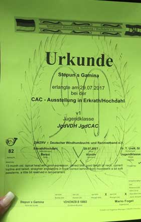 Für ihre Wurfschwester Stepun's Gamina (Fam. Fogel) gibt es SG 3.